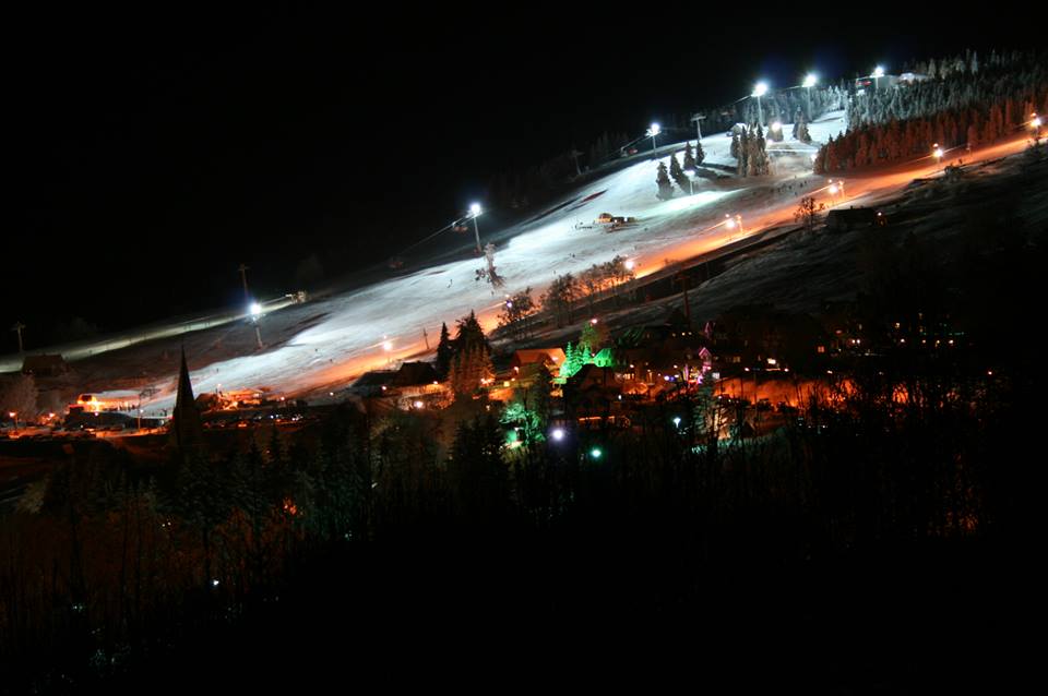 atmosfera, su vaizdu į kalnus, slidininkų keltuvus ir visą Zieleniec panoramą